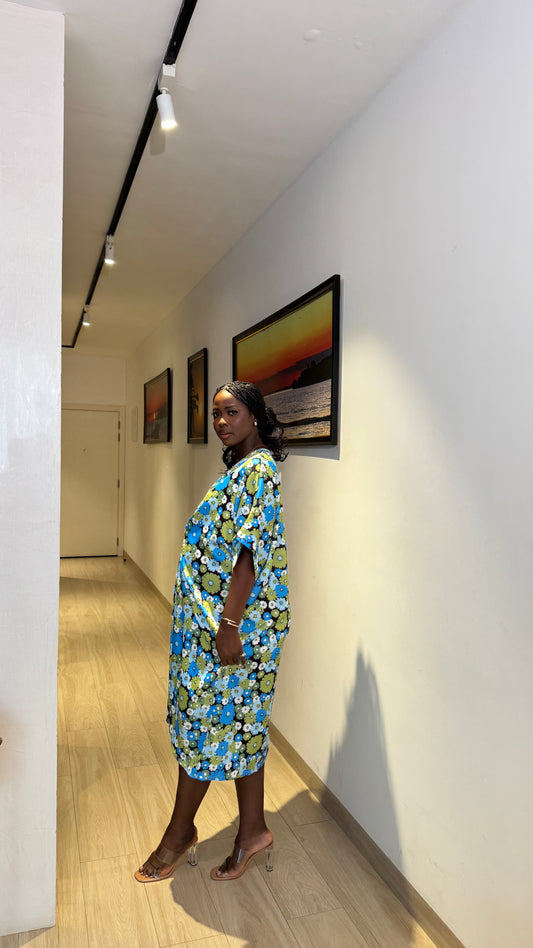 Blue & Green Floral Maternity Twist Front Dip Hem Kaftan