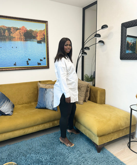 Oversized Long Sleeve White Maternity/Nursing Shirt
