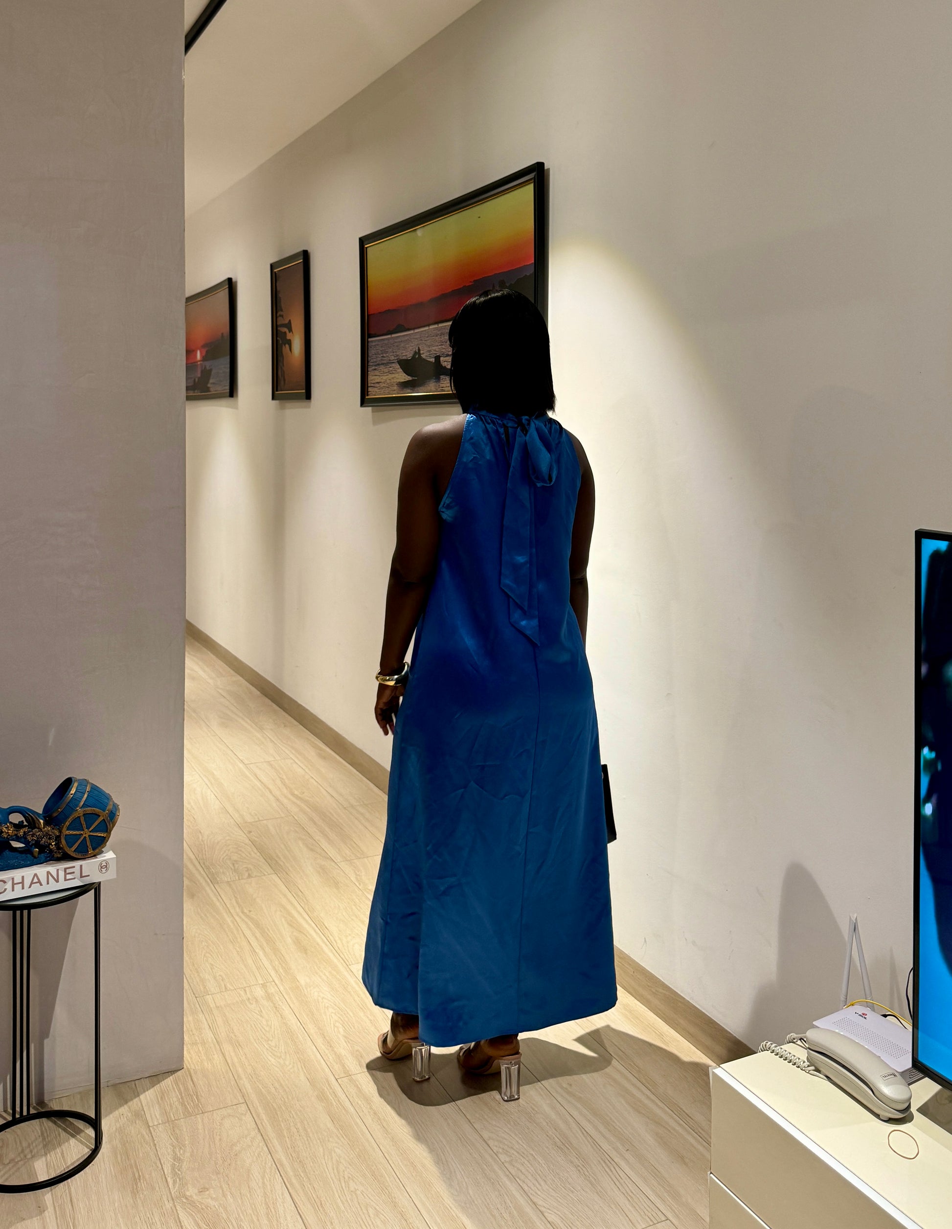 Cobalt Blue Satin Maternity Halterneck Maxi Dress