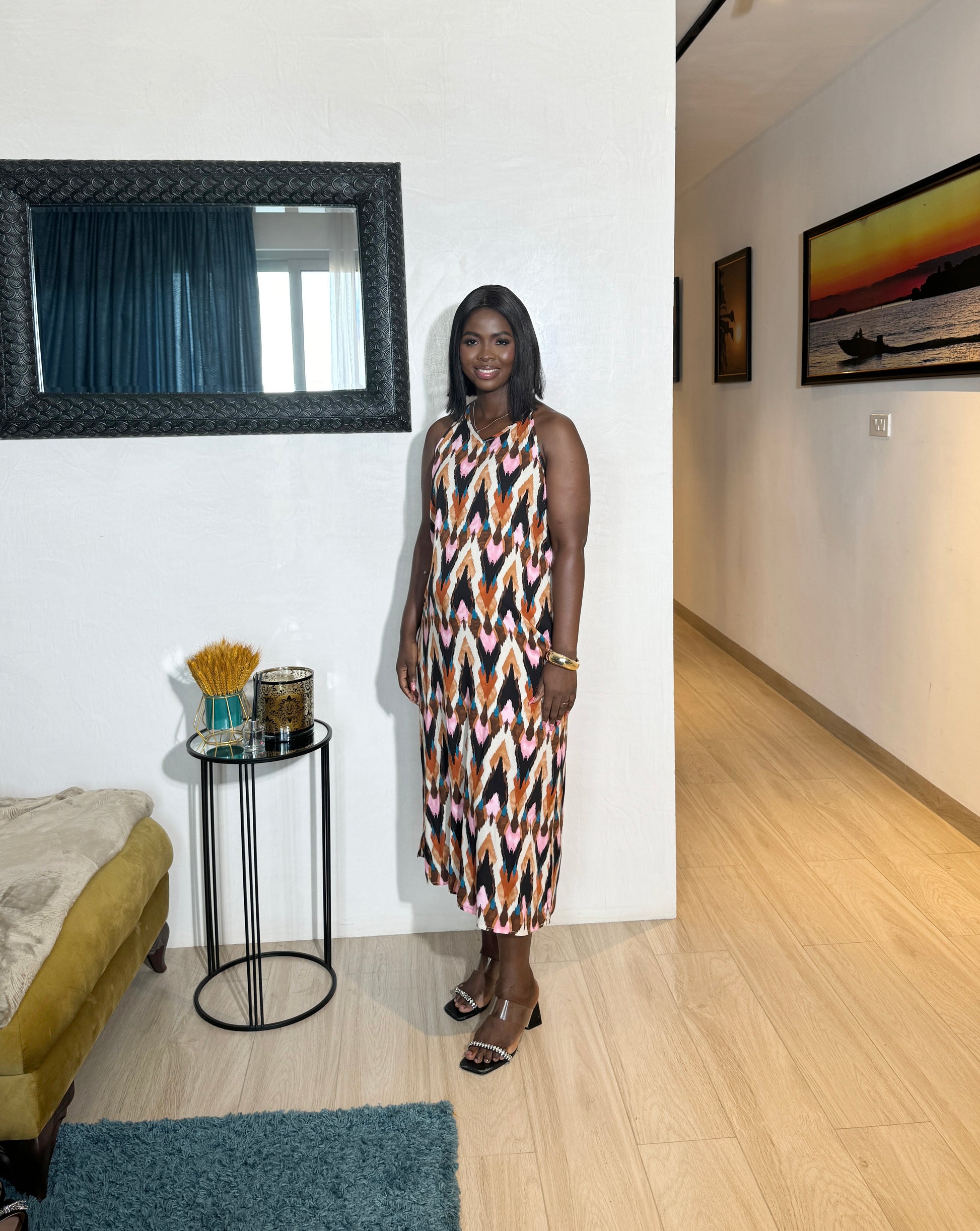 Geometric Print Maternity Spaghetti Sleeve Midi Dress