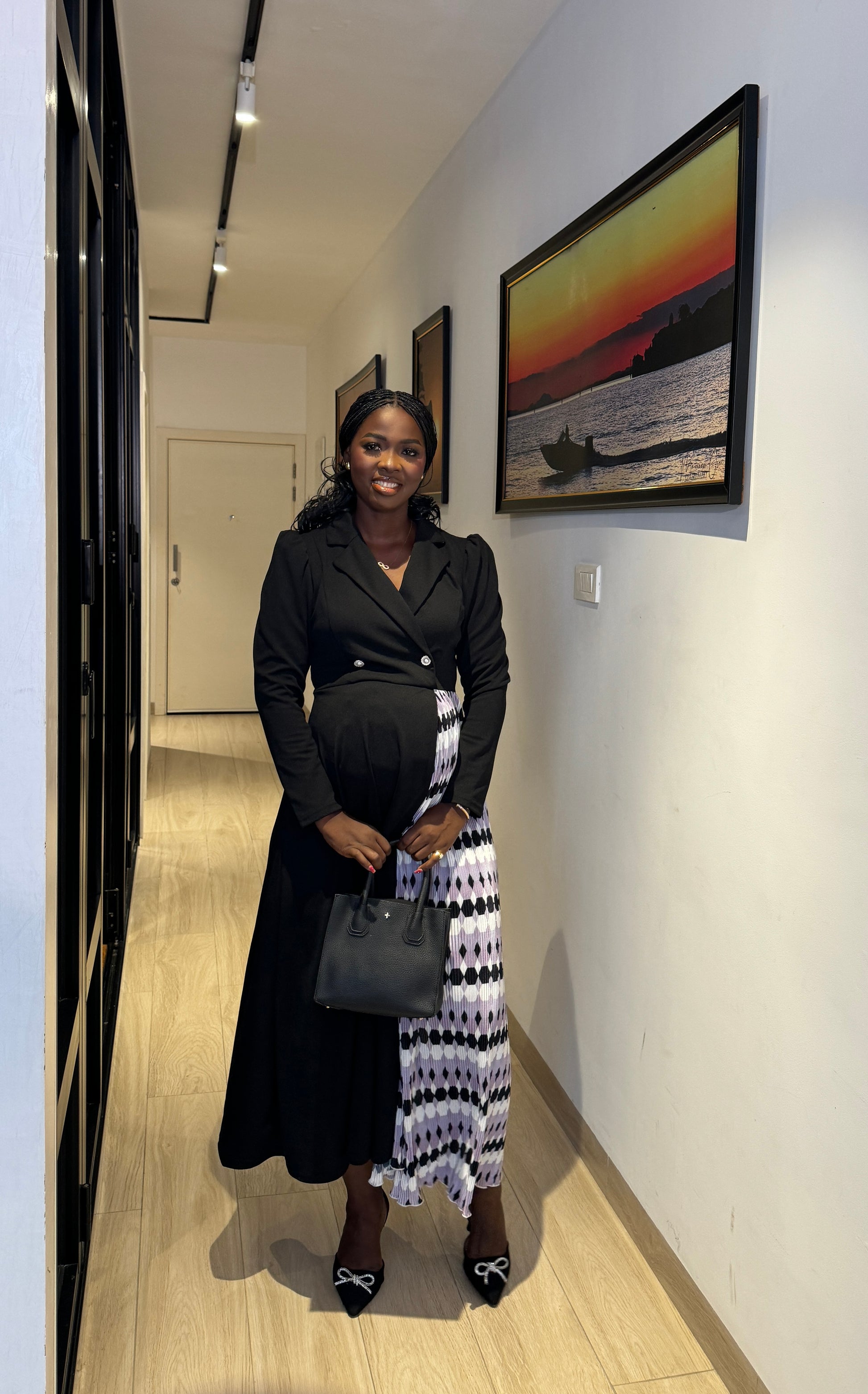 Maternity Blazer Side Pleated Midi Dress
