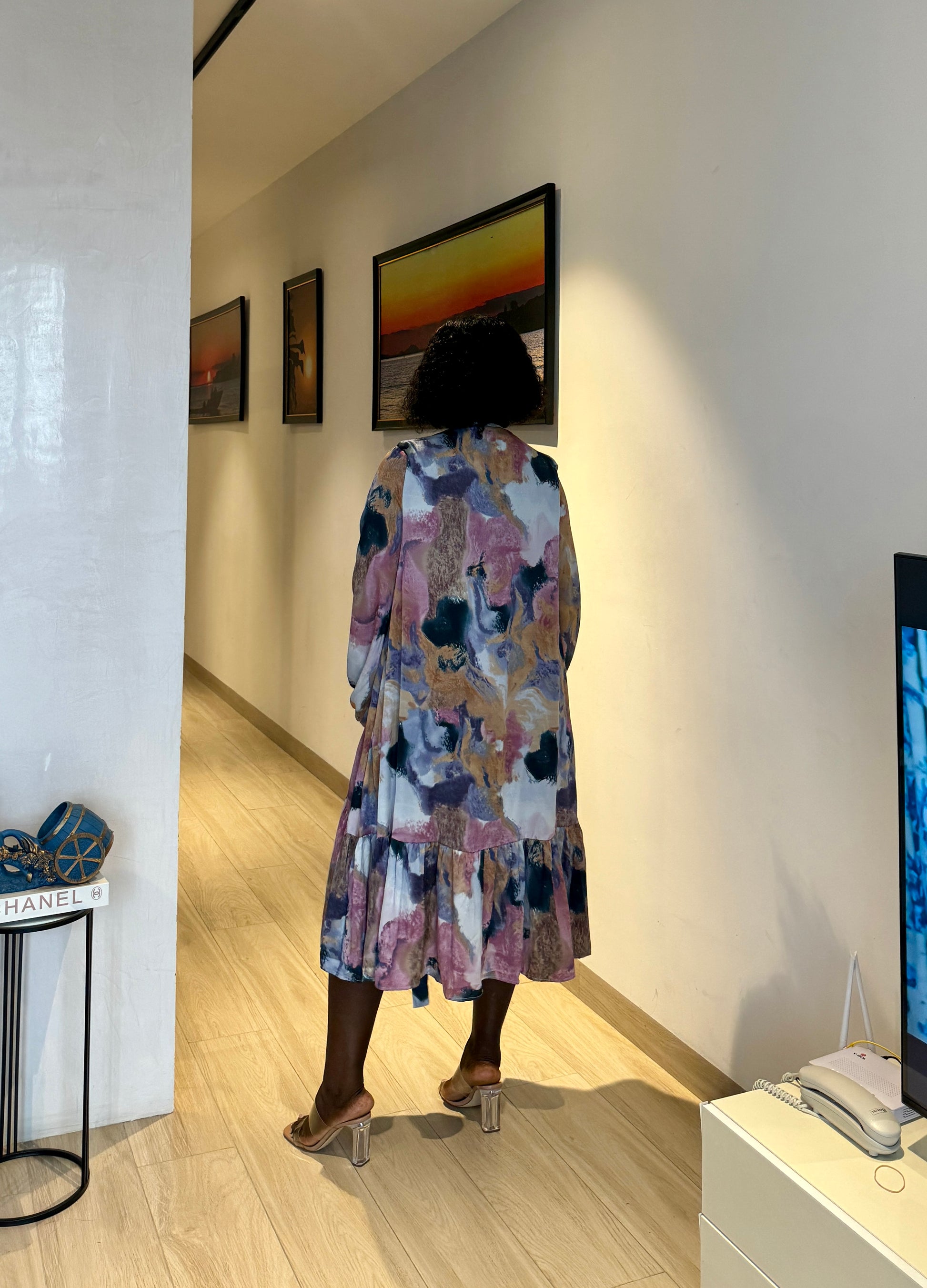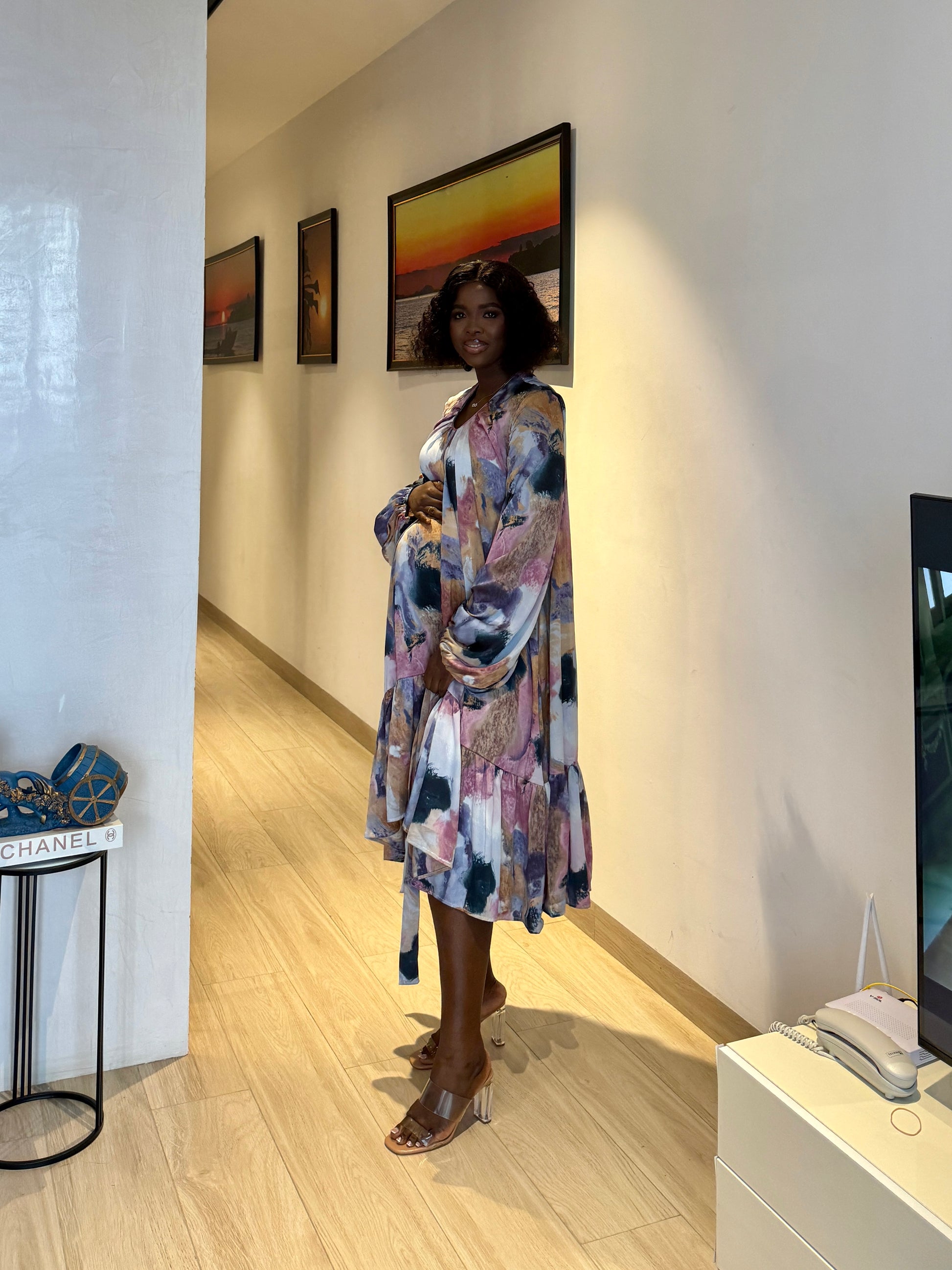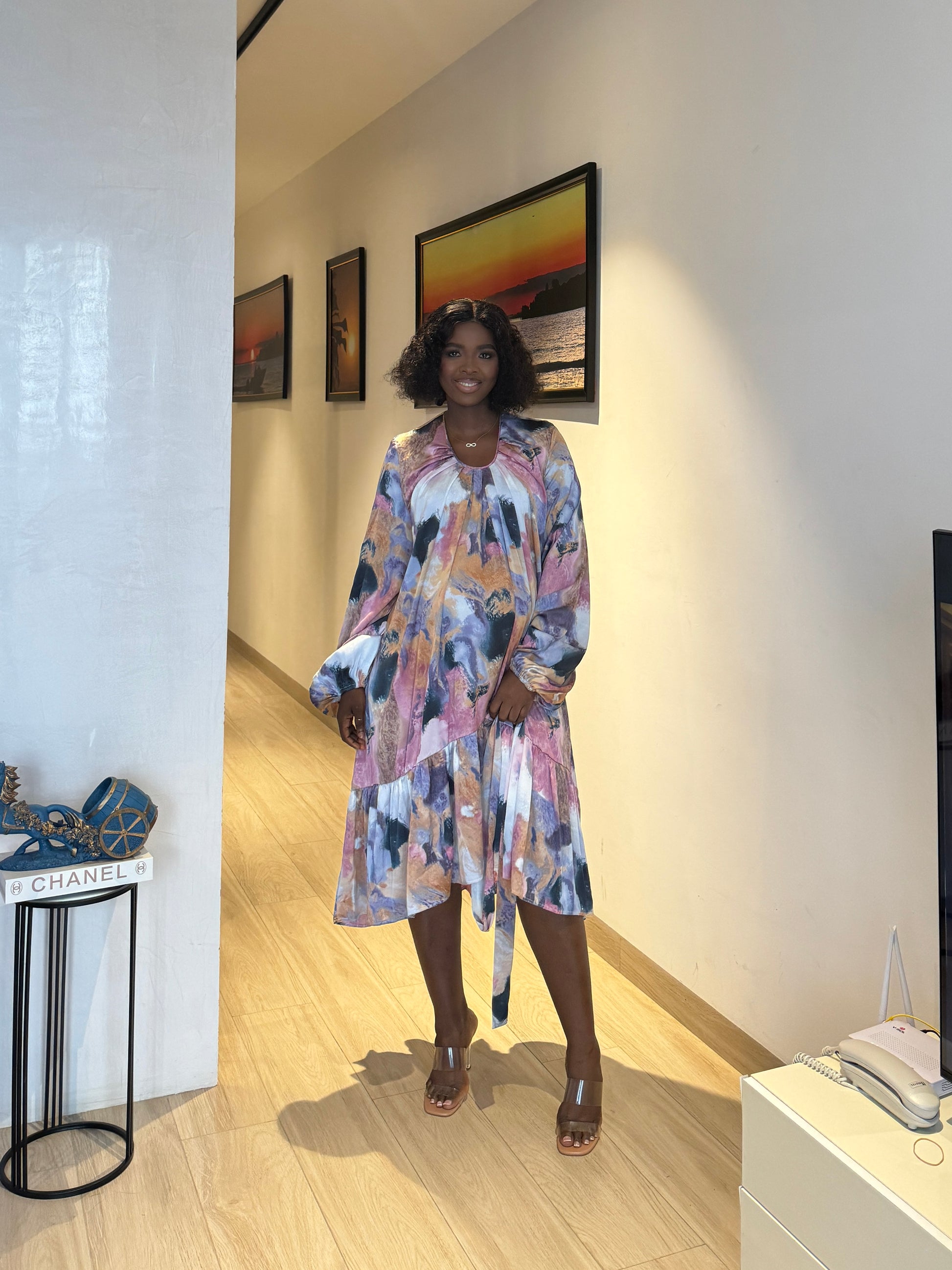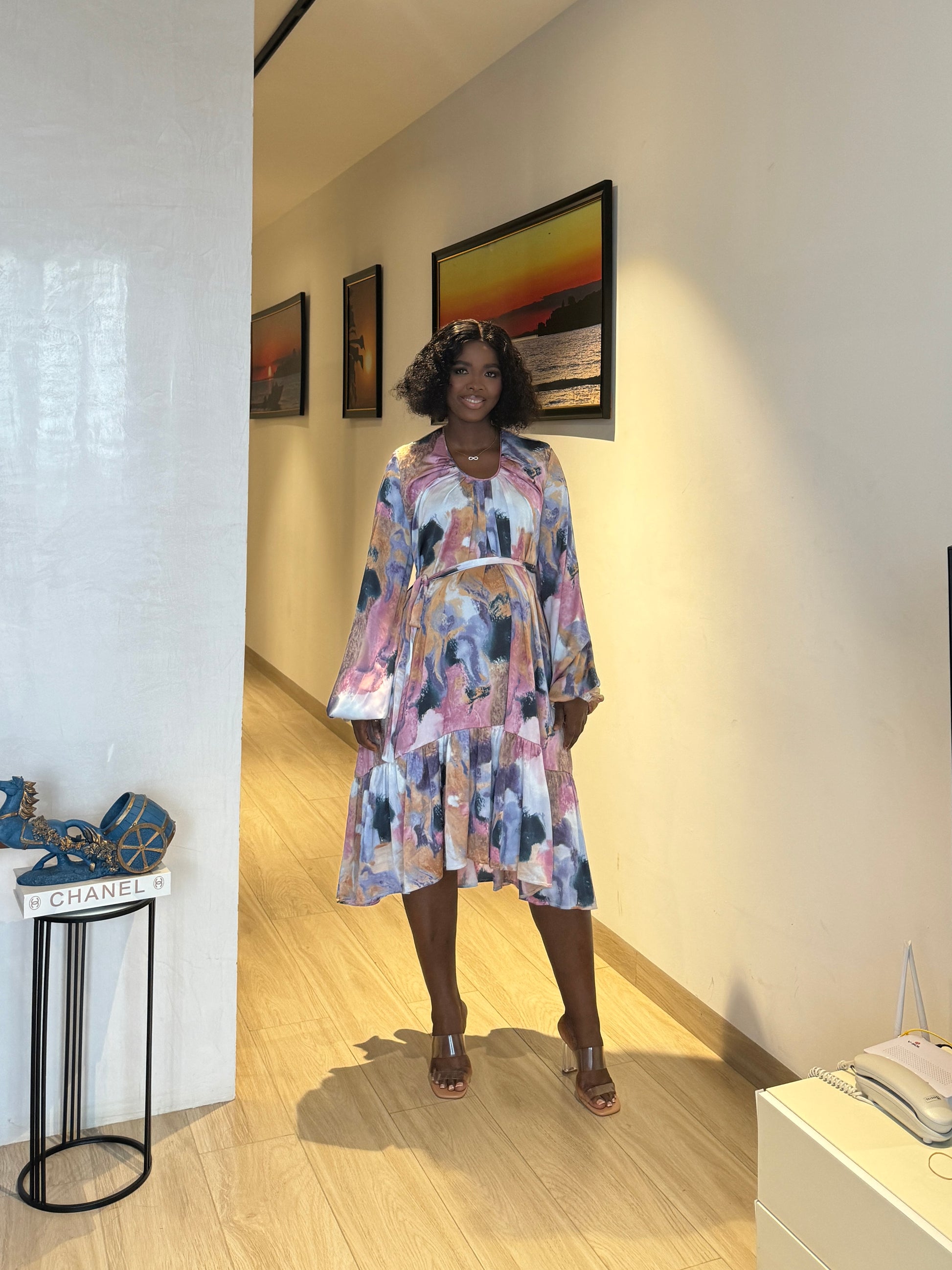 Maternity Pink Pleat Neck Smock Dress with Belt