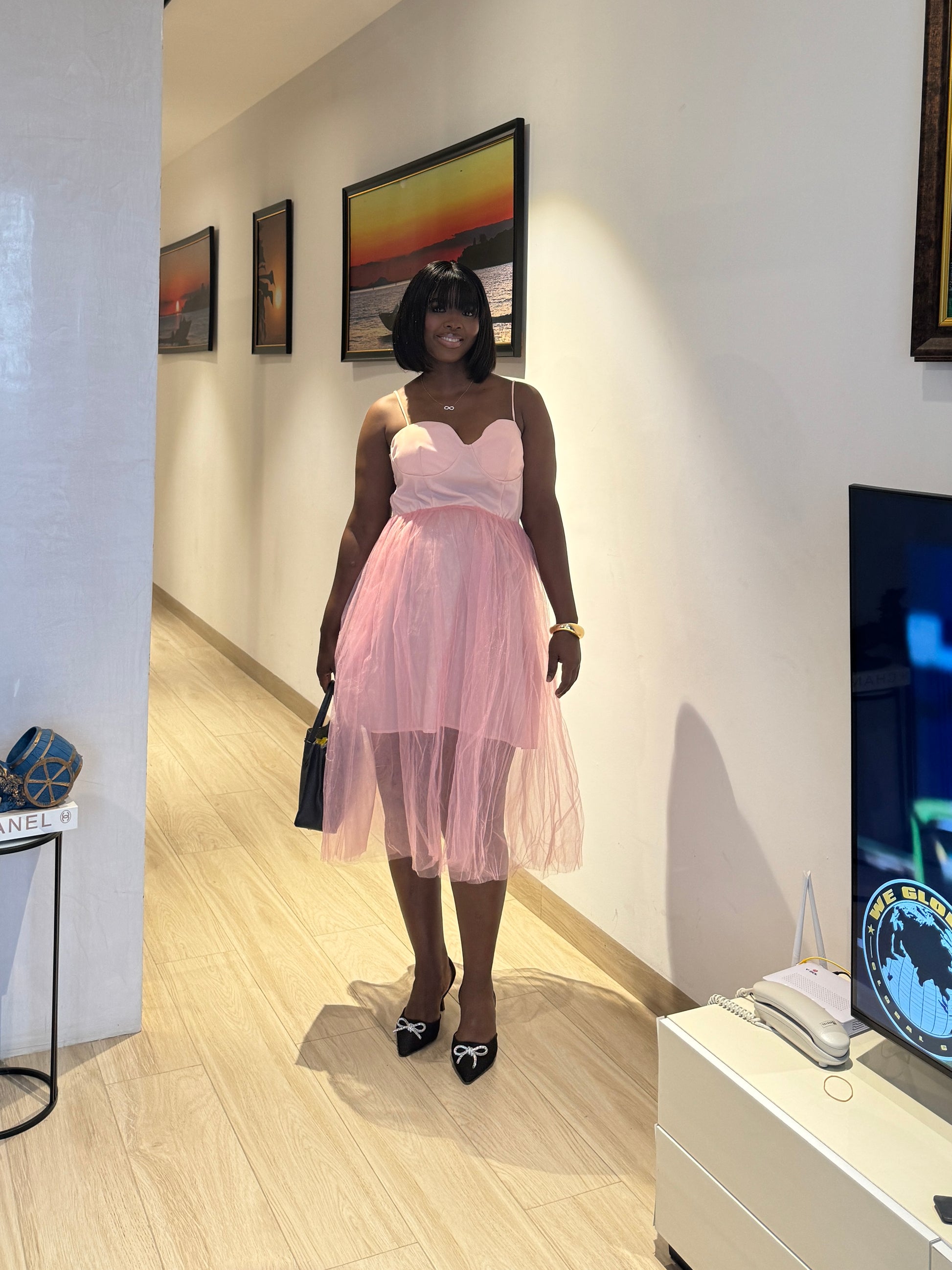 Pink Shirred Back Maternity Tulle Bottom Dress