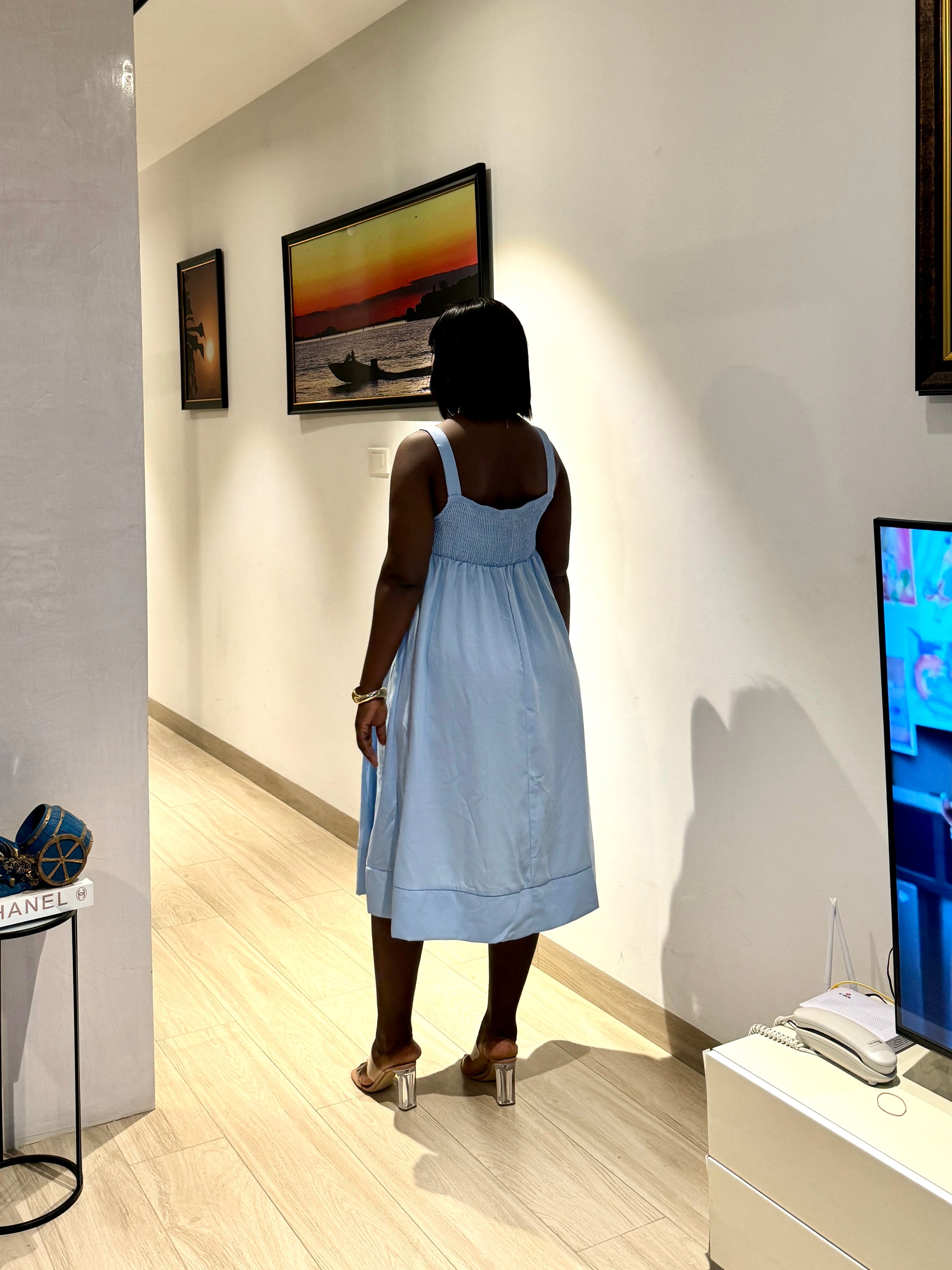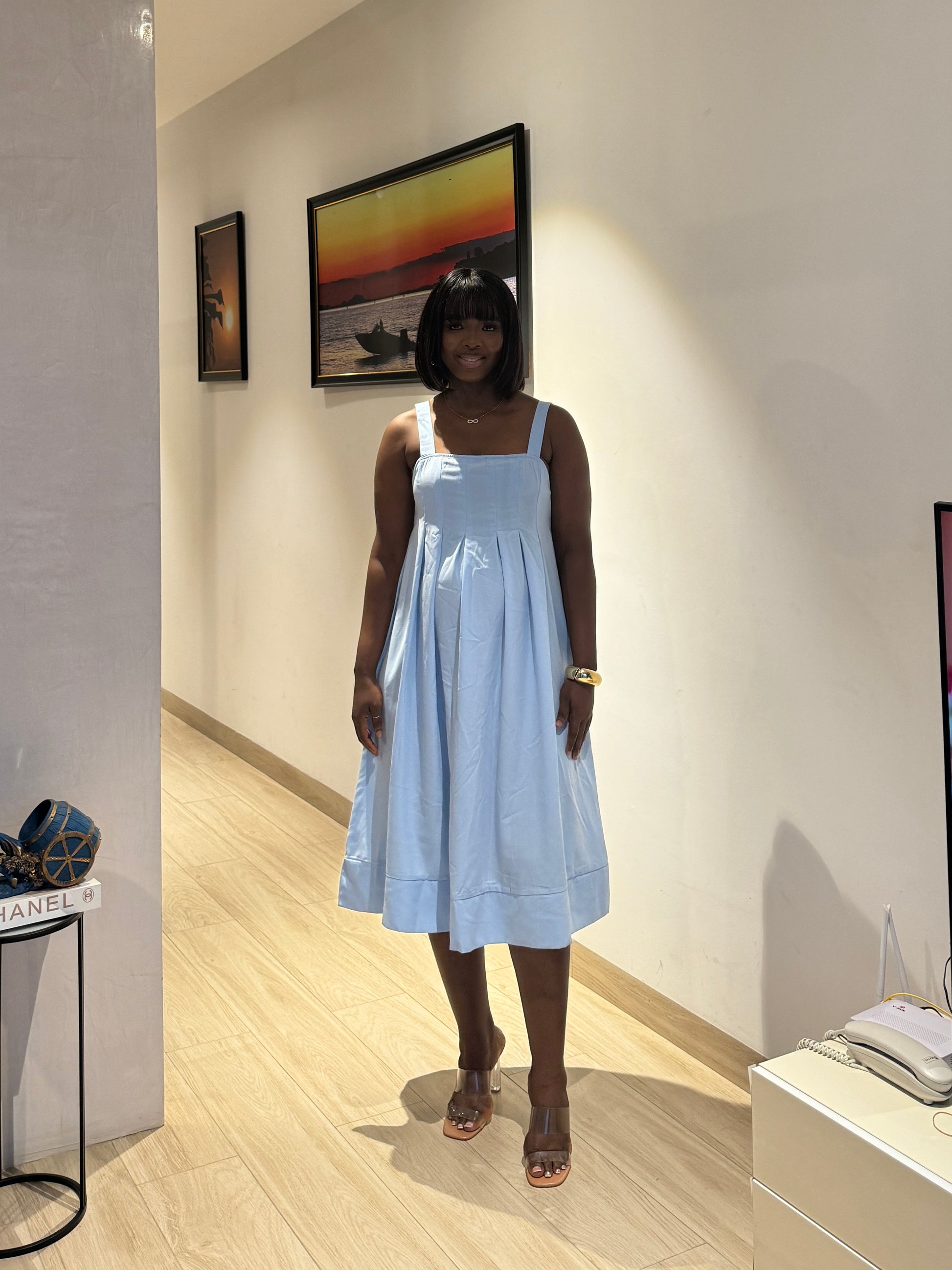Pleated Bust Spaghetti Strap Maternity Midi Dress