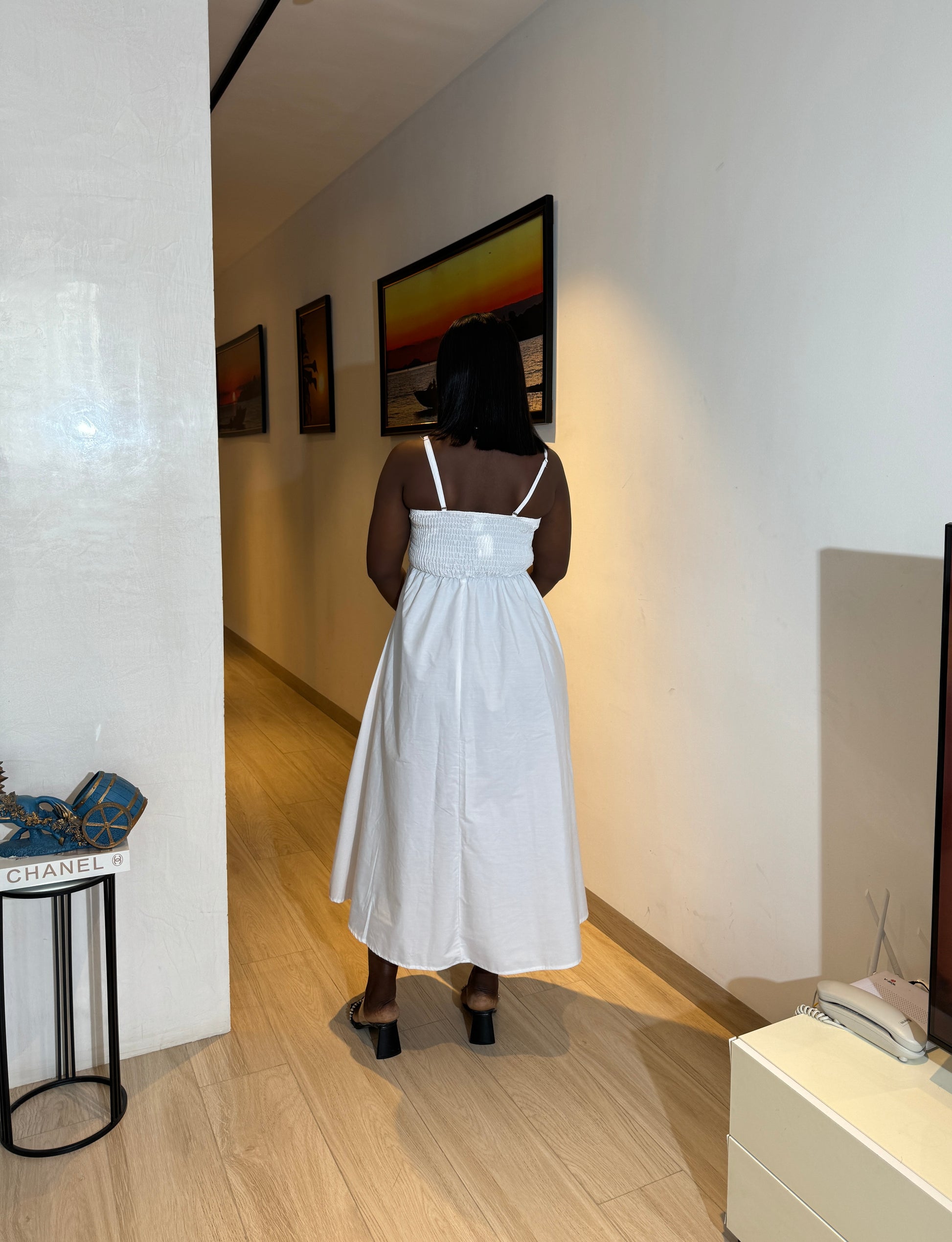 White Removable Strap Midi Cotton Maternity Dress